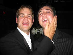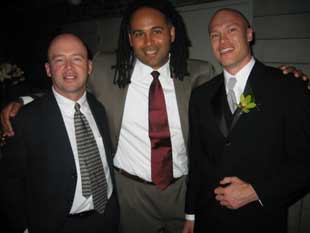 The long-anticipated wedding of Adam and Marcy finally happened. However, as luck would have it, Sam and I missed the blessed event because we had to beat everyone to the open bar and get an early start. Actually, we had to make sure the music was ready to go. The bar just happened to be serving drinks....honestly. |