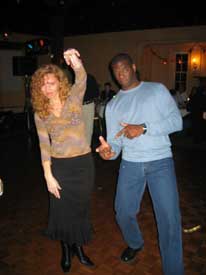 Sam can't hold a candle to Lynn's moves and he knows it. |