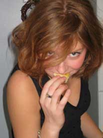 Like the last party, Melissa's hair smells like freshly cooked bacon, and Jamie can't resist a lick. |