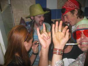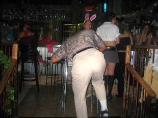 "Whose dick do we have to suck to get some drinks around here, dammit?" |