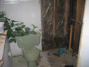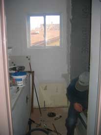 A nice new throne! The counter and cabinets didn't come in for at least a month, so the project went on hold until then. |