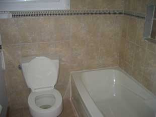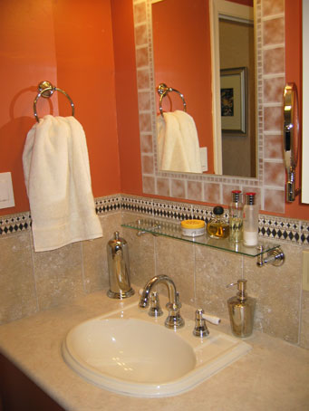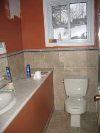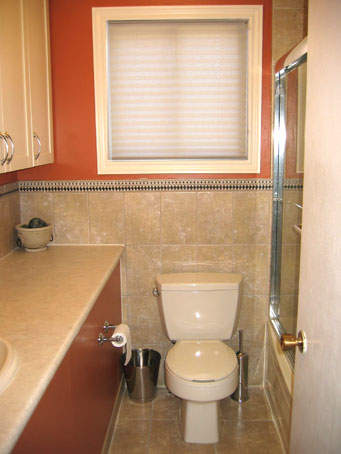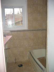 The last room in the house on my renovation list. After the success of my previous tiling jobs that started at the front entrance, then the kitchen backsplash, I decided to tackle the mother of all tiling jobs (at least for me) and did the bathroom. As with my other renovation jobs, I did everything myself (well, my dad did help with some plumbing). Even the colour scheme and decorating was done without any female help!