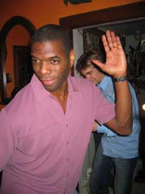 Sam demonstrates his karate skills. |