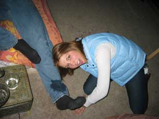 Melissa tackles Renee. |