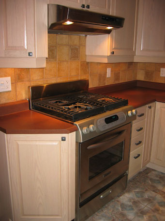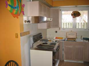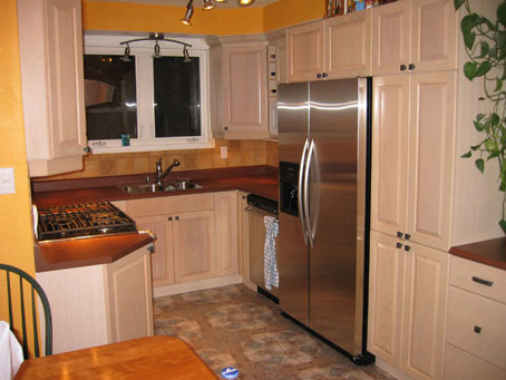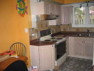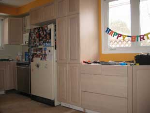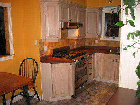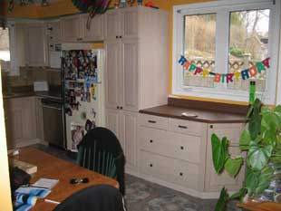 The bulk of the work was done by the middle of April 2003. The cabinet that was supposed to go over the left side of the stove was manufactured incorrectly and it took The Building Box nine months to get the corrected version to me. I wasn't able to finish the detailing until that was installed, but to be honest, it didn't really set me back that much. I was working in Ottawa for the summer and my weekends were not going to be spent indoors.