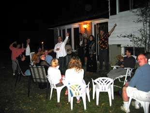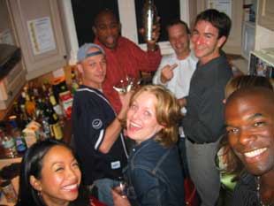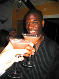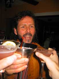 "Pay attention! When I hold my martini up like this, I expect EVERYONE to cheers me." |